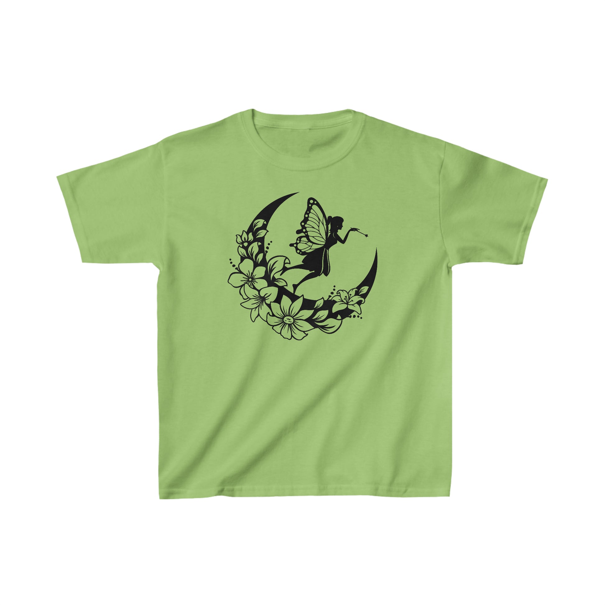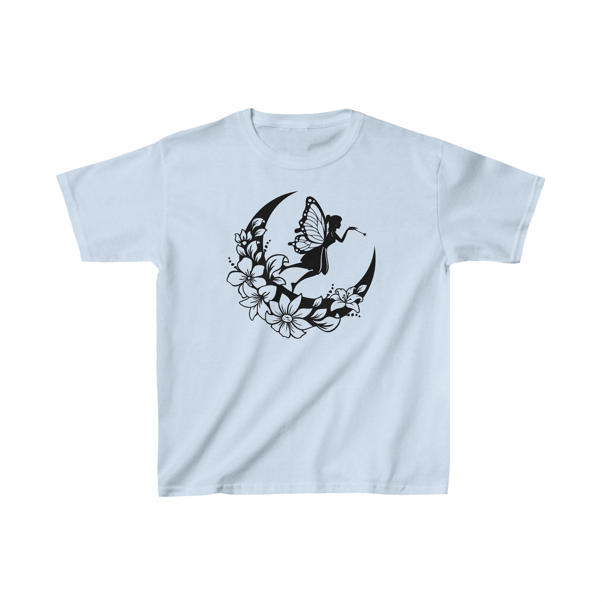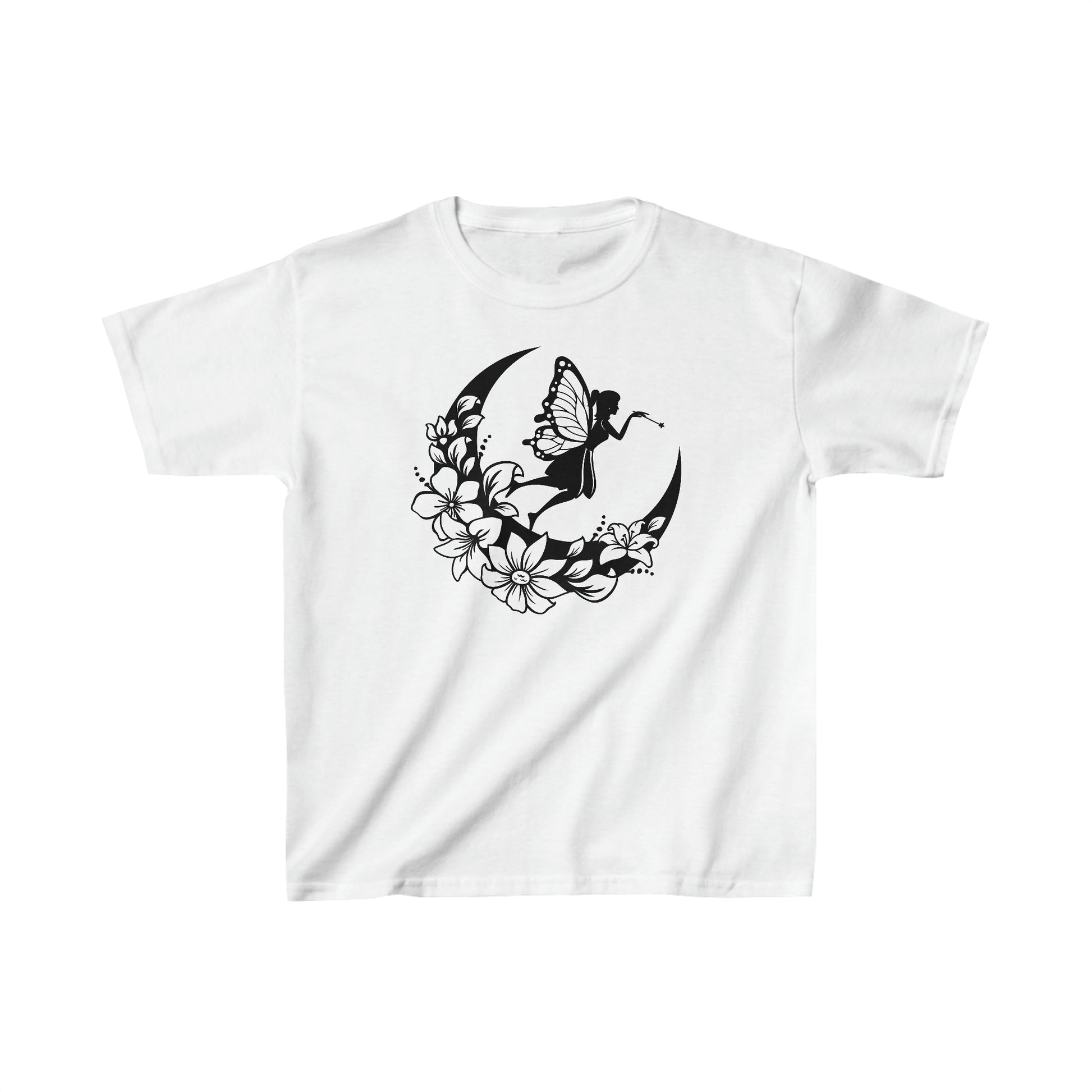 Fairy Standing on Moon with Flowers - Kids Heavy Cotton Tee