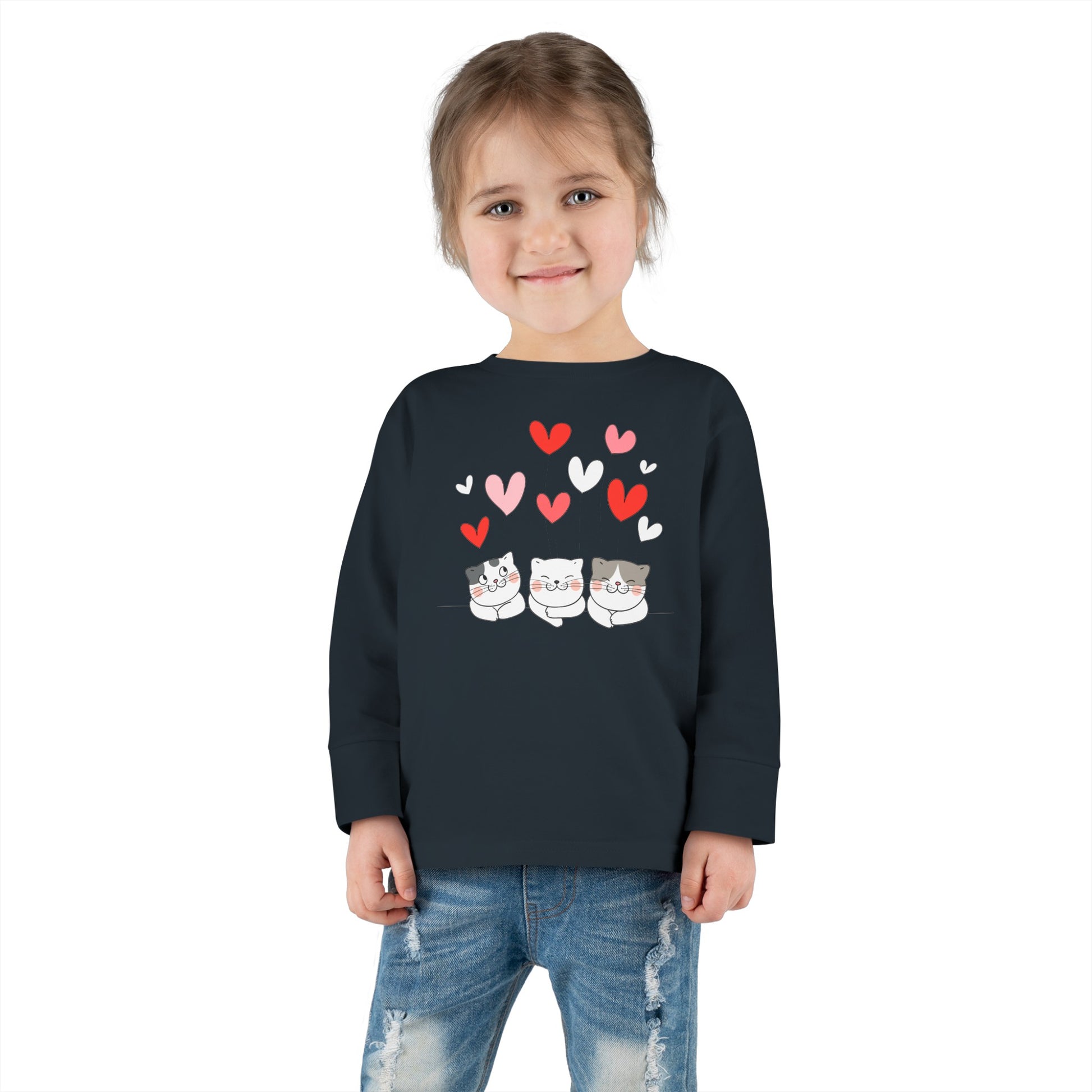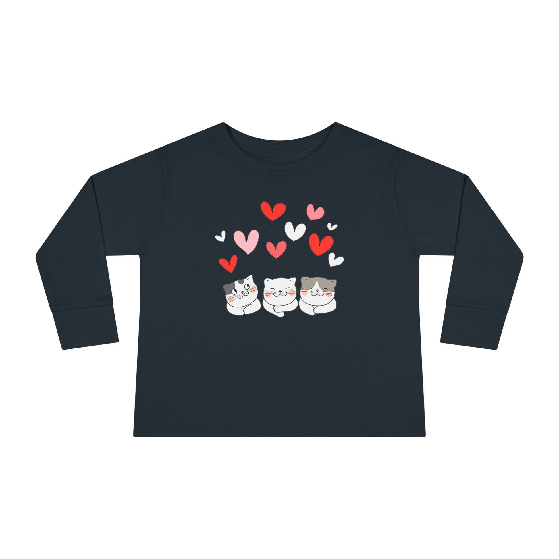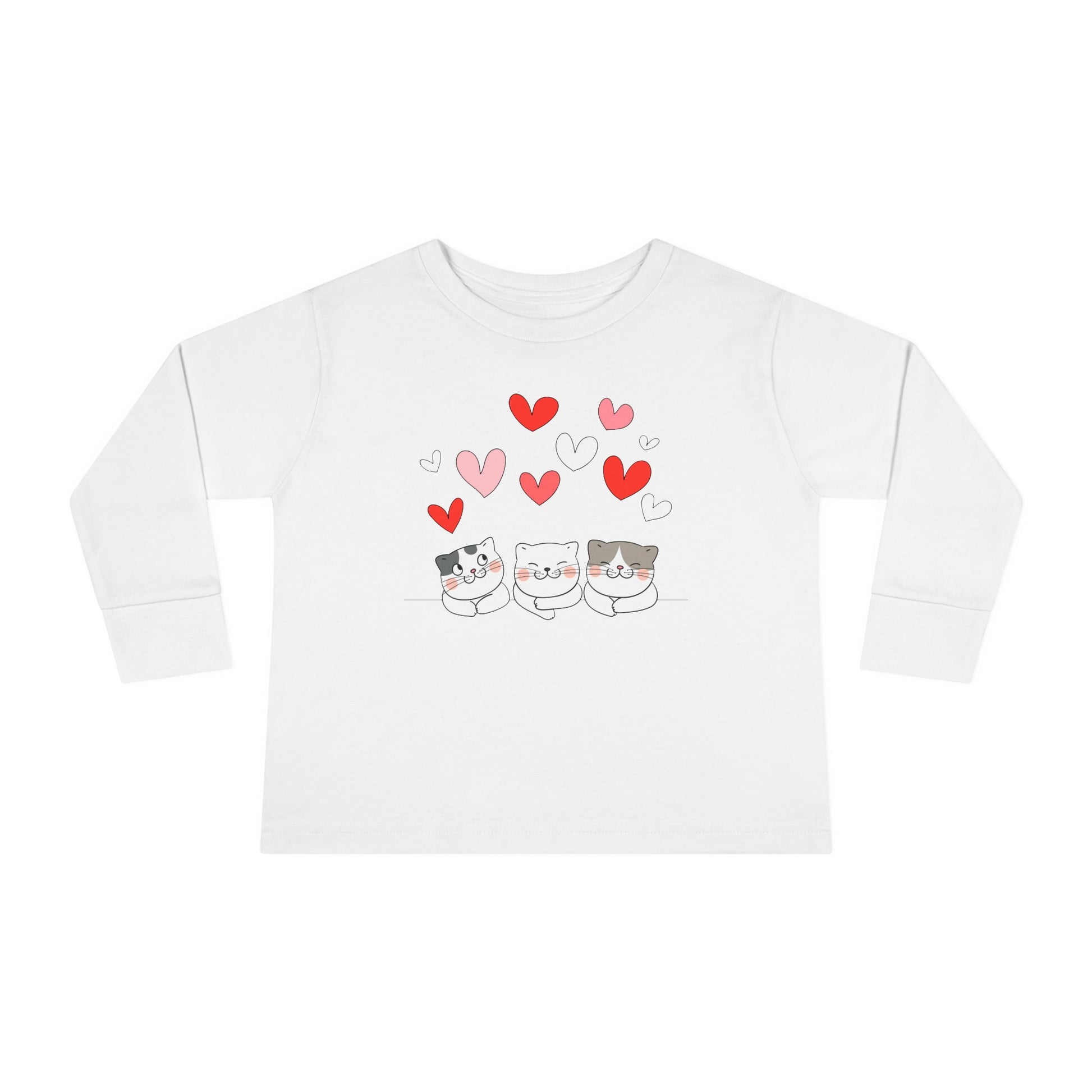 Three Cute Cats - Hearts - Toddler Long Sleeve Tee