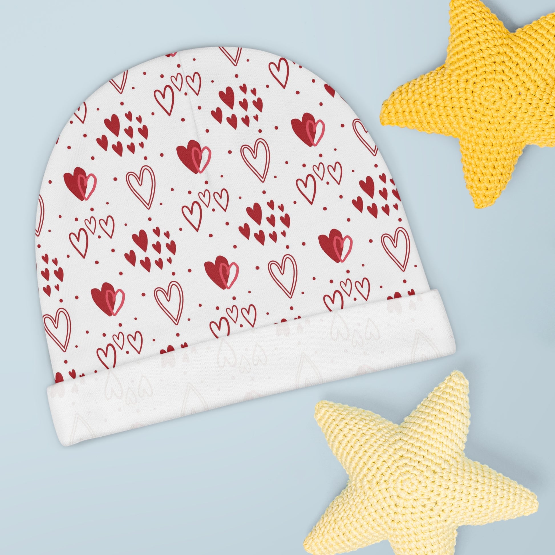 White and Red Hearts - Super Cute - Baby Beanie