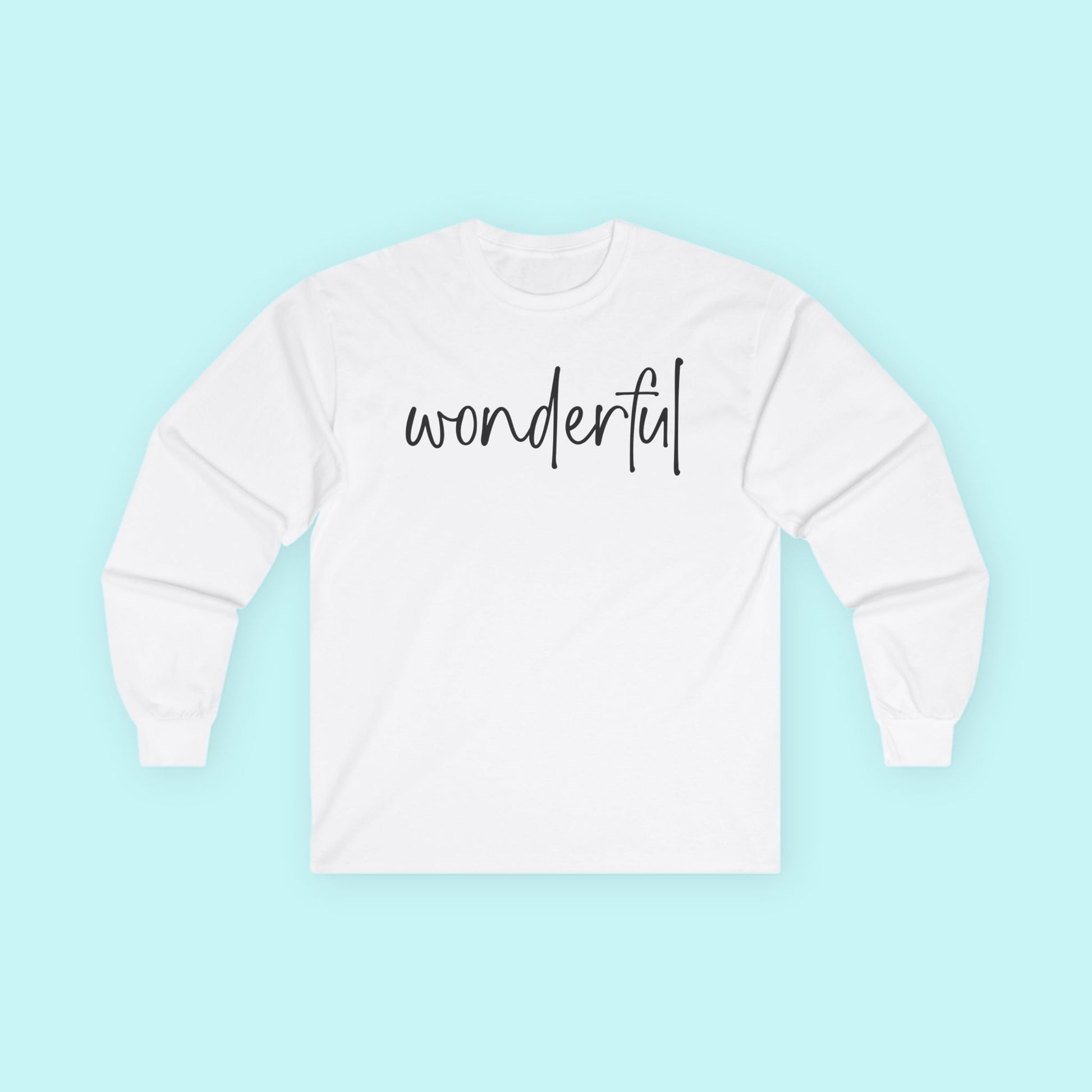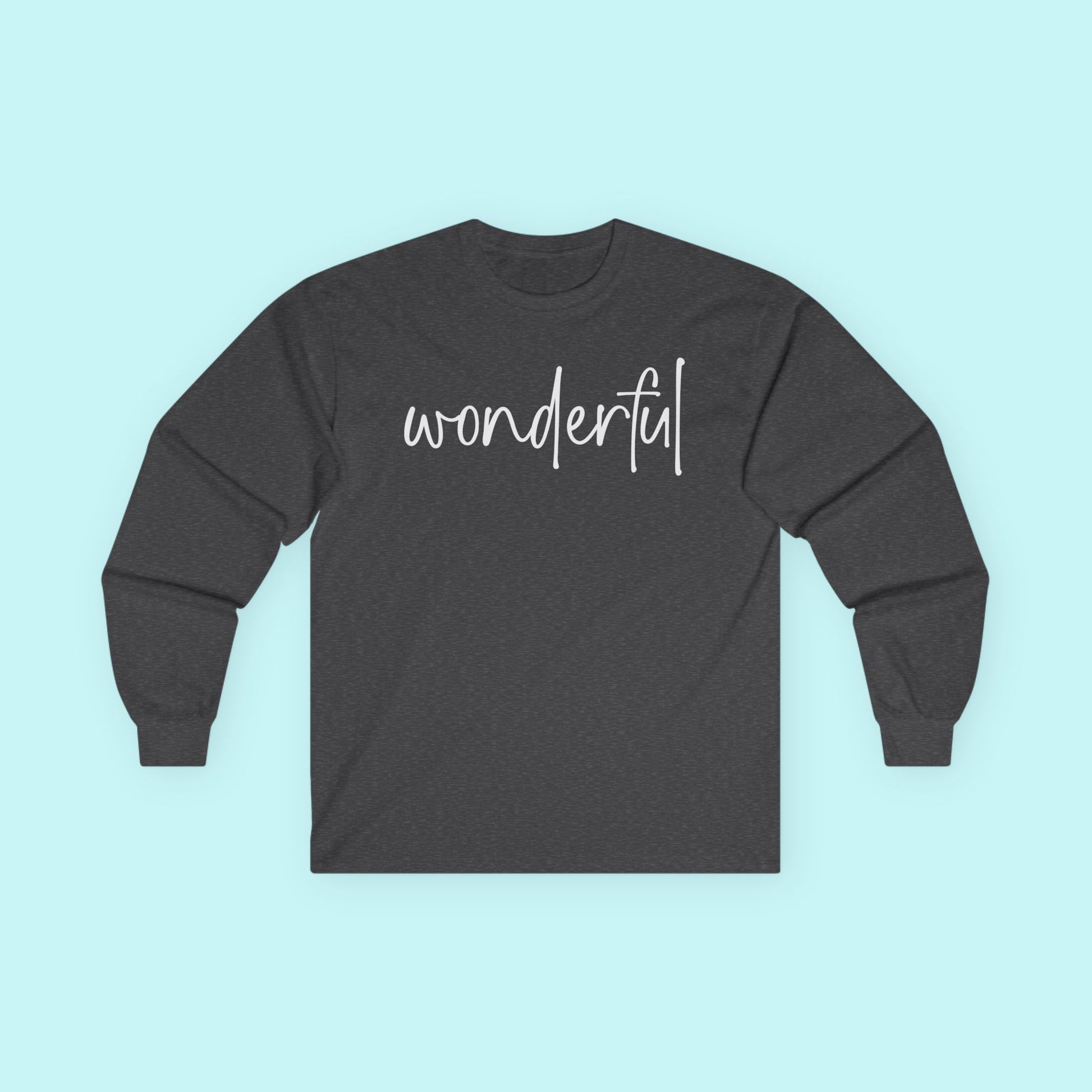 You are a wonderful work in progress. This uplifting “Wonderful” tee is a feel-good favorite for those practicing self-love, gratitude, and joyful living. A beautiful gift to yourself or someone who deserves a reminder of their worth.