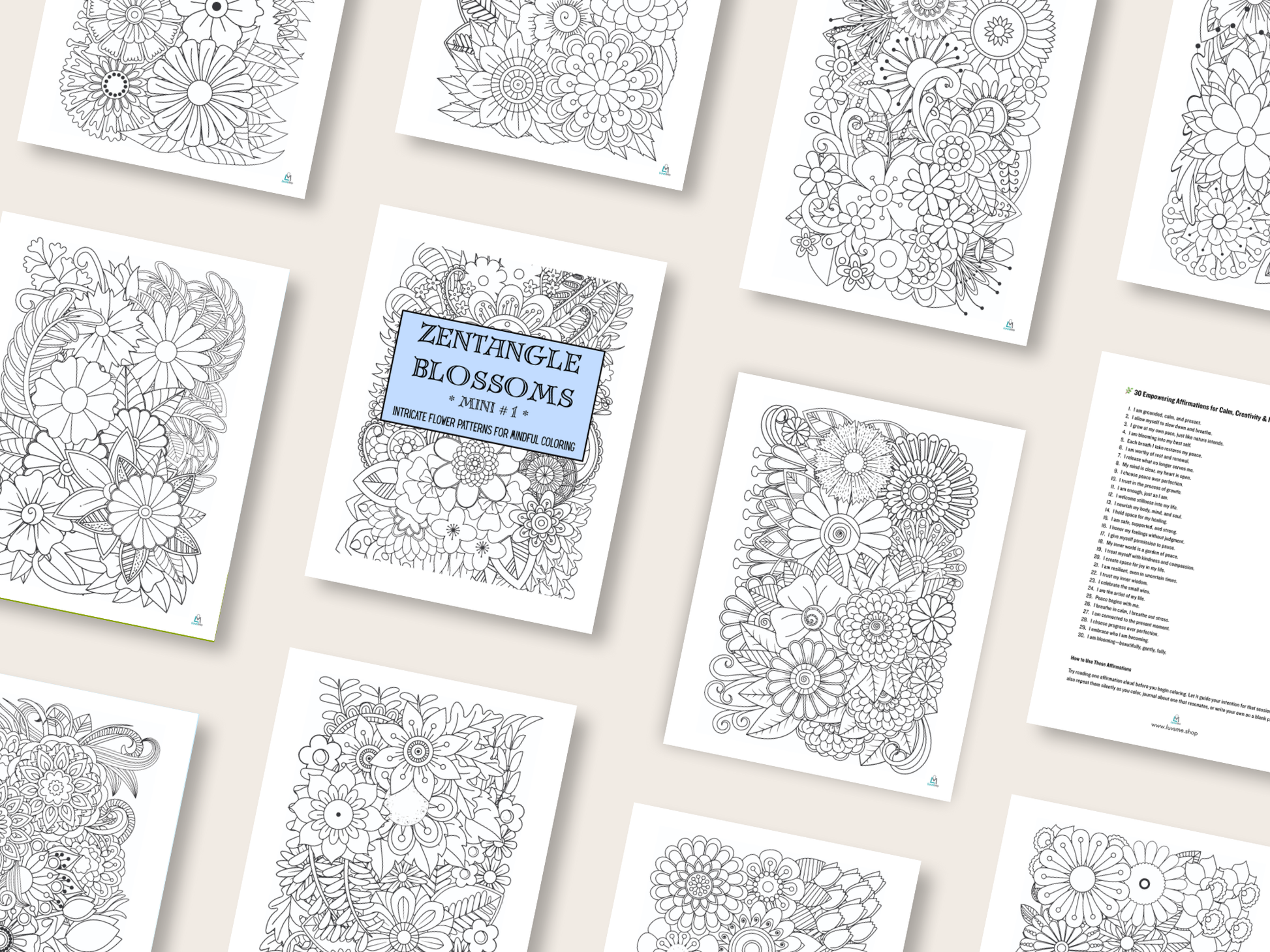 Zentangle Blossoms - Mini 1 - Intricate Flower Patterns for Mindful Coloring - Digital Download
